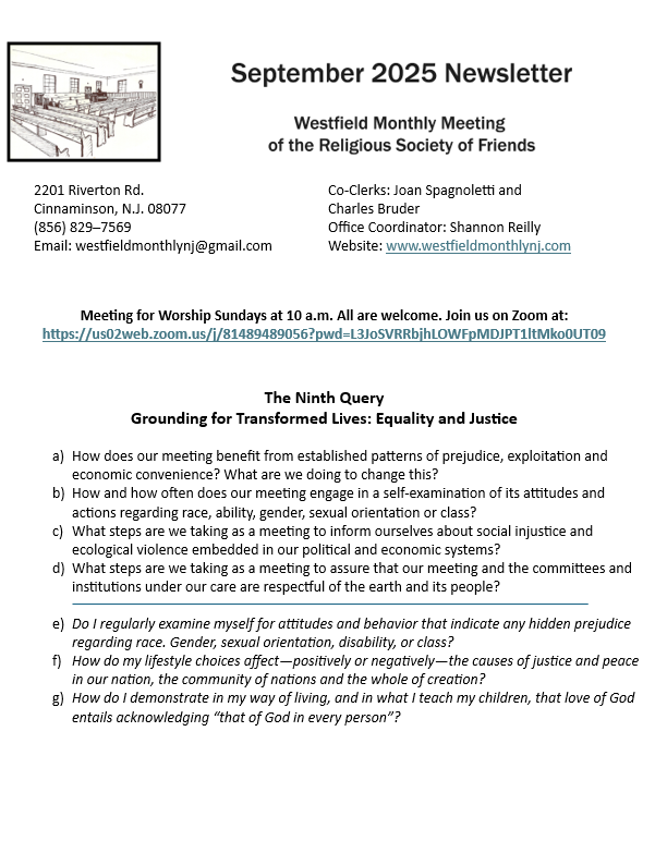 Please keep up with all of the recent happenings at Westfield Monthly Meeting, located in Cinnaminson, New Jersey.